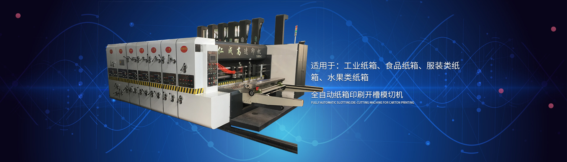 主要產(chǎn)品有高速印刷開槽模切機、半自動水墨印刷開槽模切機、全自動粘箱打包聯(lián)動線、全自動 插格機、半自動粘箱機、半自動釘箱機、手動釘箱機、薄刀分紙機、PE繩打包機、PP帶智能打包 機、圓壓圓模切機、平壓壓痕機、自動裱紙機、水墨污水處理機等產(chǎn)品